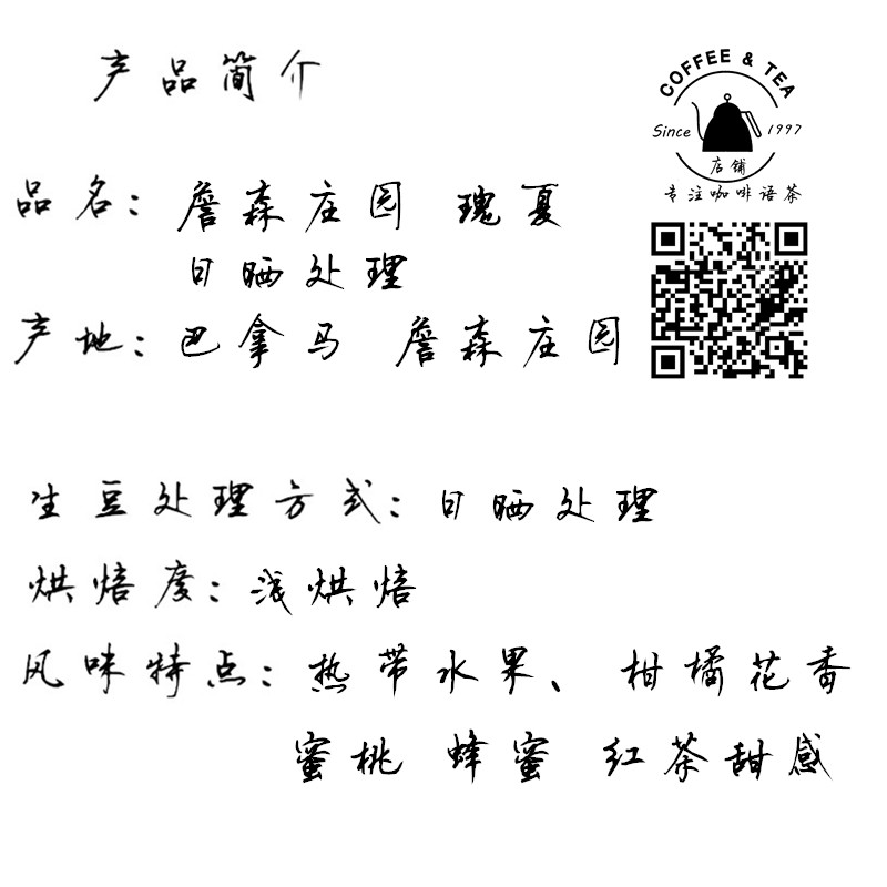 巴拿馬詹森莊園瑰夏Geisha日曬精品咖啡豆現(xiàn)烘焙咖啡豆
